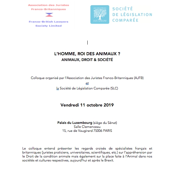 Pour terminer, un autre colloque sur le droit comparé en matière de droit animal est organisé le 15 octobre au Sénat par le sénateur Arnaud Bazin (invitation ci-contre)
